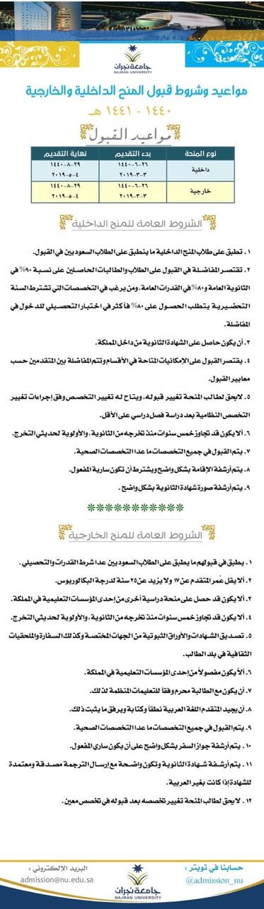 جامعة نجران تعلن مواعيد الم ن ح الداخلية والخارجية لغير السعوديين