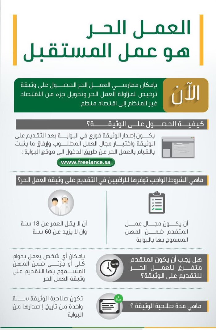 السعودية تطلق برنامج العمل الحر يشمل 78 مهنة معلومات مباشر